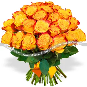 Букет оранжевых роз + хризантемы - Осенний коктейль