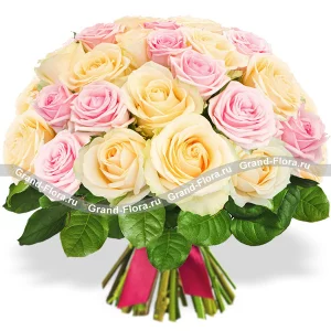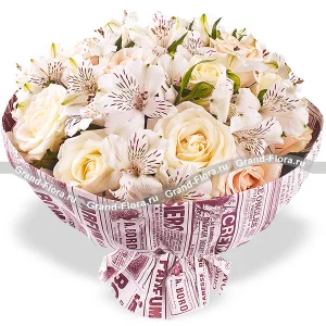 Вдвойне прекрасна – кремовые розы с альстромерией