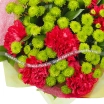 Летний, кокетливый, яркий — все сплелось в этом букете. Красные гвоздики и миниатюрные зеленые хризантемы поднимут настроение на весь день. Глядя на такой букет, невозможно не улыбаться — ведь из него пышет энергия, жажда жизни, позитив. Вы можете выбрать абсолютно любой повод, чтобы подарить это волшебство, ведь нет ничего ценнее улыбки близкого человека.