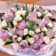 Букет получился отличный. Спасибо вам, что нашли кустовую сиреневую розу как я просил ( ну чтобы не меняли на розовую), пришлось подождать с доставкой конечно, ну да ладно, главное результат не заставил себя долго ждать, а эффект от букета превзошел все мои ожидания! Супруга была на 7 небе от счастья! Столько эмоций- вы бы видели!!! Я вам очень благодарен, что не подвели и все сделали как надо!